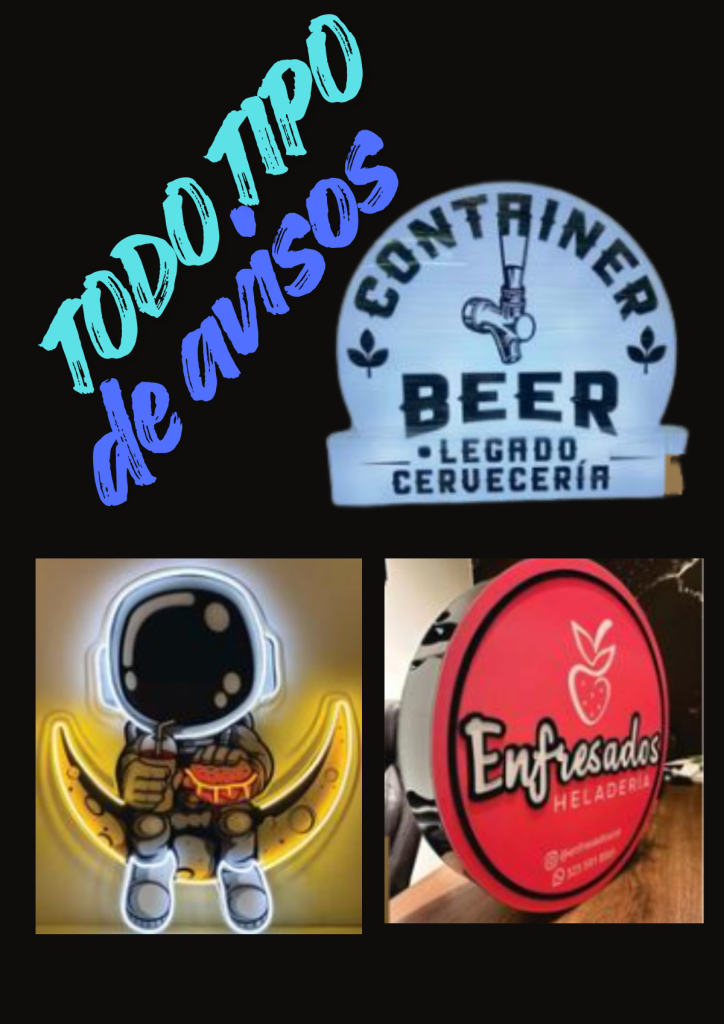 Manejamos todo tipo de avisos tipo neoflex, acrílico, aluminio, cajas de luz y 3D, pasa vallas, vallas publicitarias en general, etc.